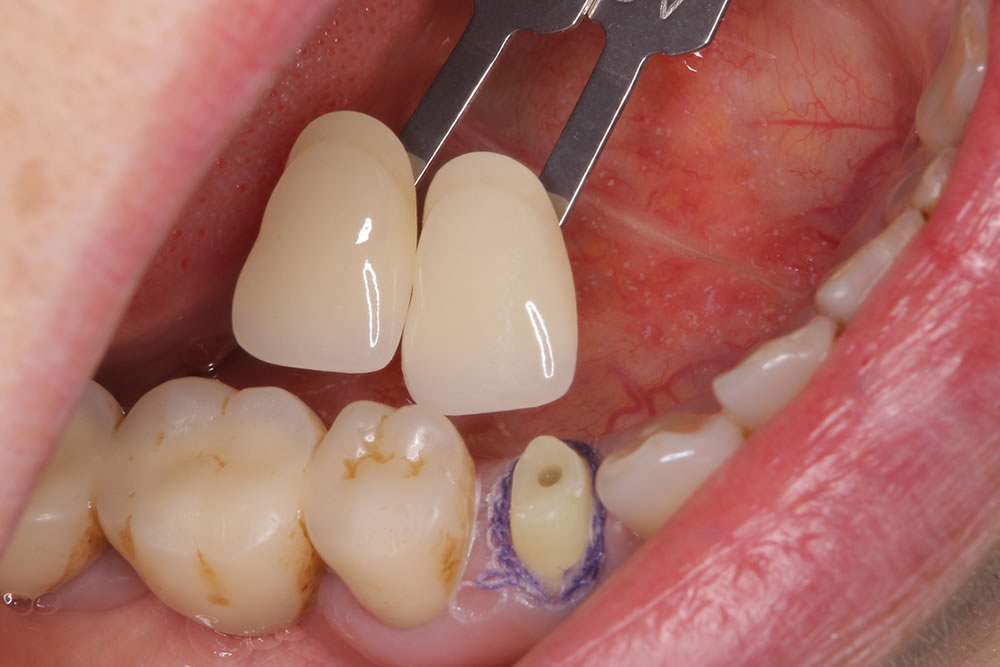 被せ物に関しての患者さんのご希望は、虫歯になりにくく天然の歯のように自然に見えることでしたので2本ともセラミックを選択していただきました。